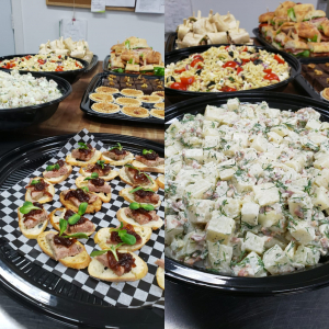 Minimum 20 personnes, commande 1 semaine à l’avance – serviettes de tables et couverts jetables inclus – Thé, café, infusion en sus ($) – Personnel de service en sus ($) – Livraison disponible, communiquez avec nous – Taxes en sus – Prix sujets à changement sans préavis